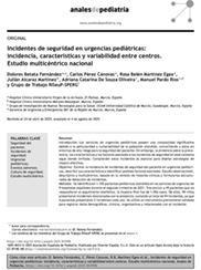 Incidentes de seguridad en urgencias pediátricas: incidencia, características y variabilidad entre centros. Estudio multicéntrico nacional